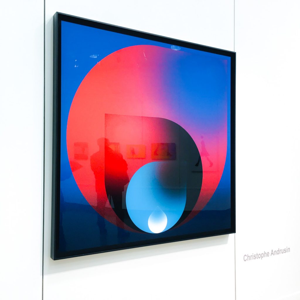 En ce qui concerne les couleurs, Christophe Andrusin utilise principalement des nuances de bleus. Le bleu est souvent associé à la confiance, à la paix et à la sérénité, des valeurs essentielles pour l’organisation Médecins du monde. Il va travailler sur toile avec le orange fluorescent pour représenter le code couleur de la sécurité, mettant ainsi l’accent sur l’importance de fournir des soins et un soutien dans des environnements souvent instables. Ces couleurs seront en transparence, renforçant le caractère abstrait de l’œuvre, permettant au public de percevoir les lettres et les mots de manière subjective et personnelle.