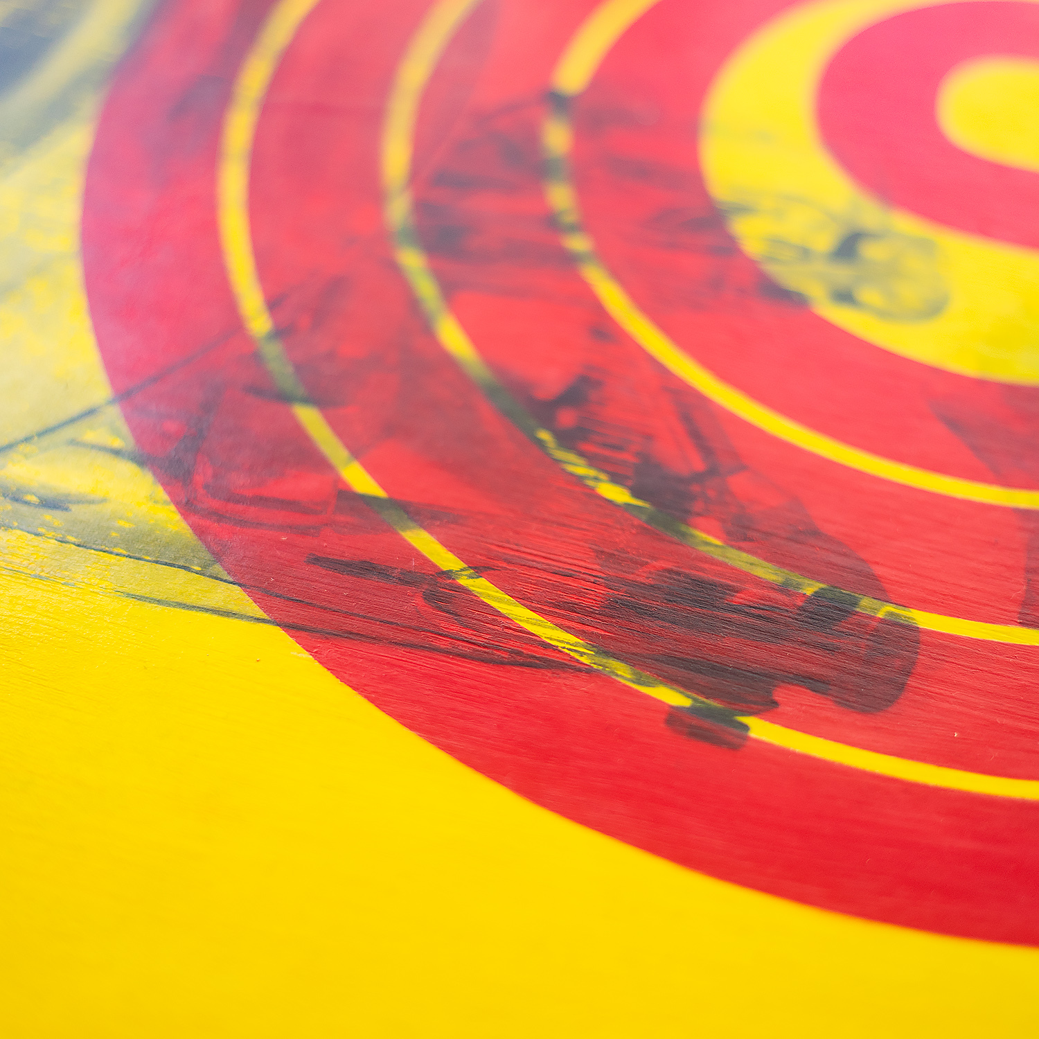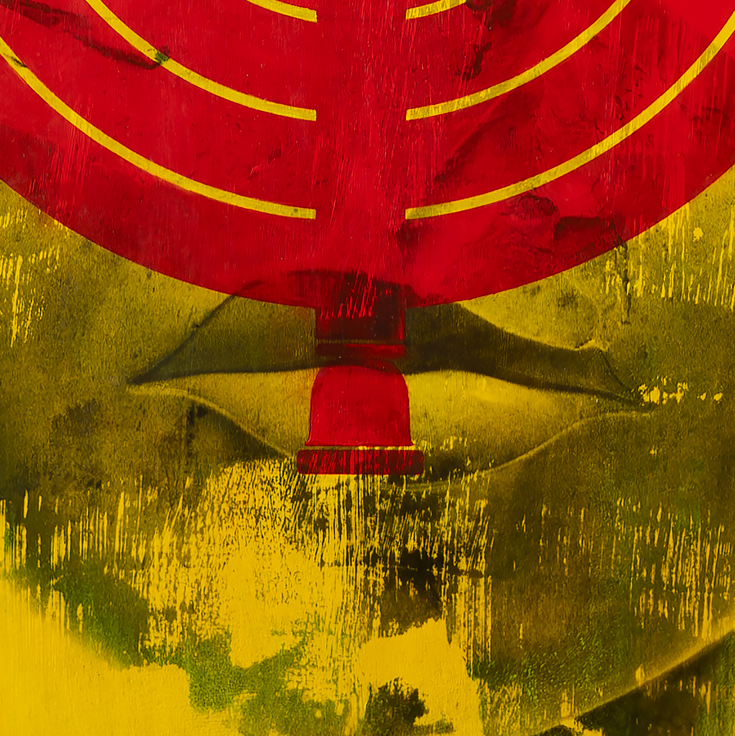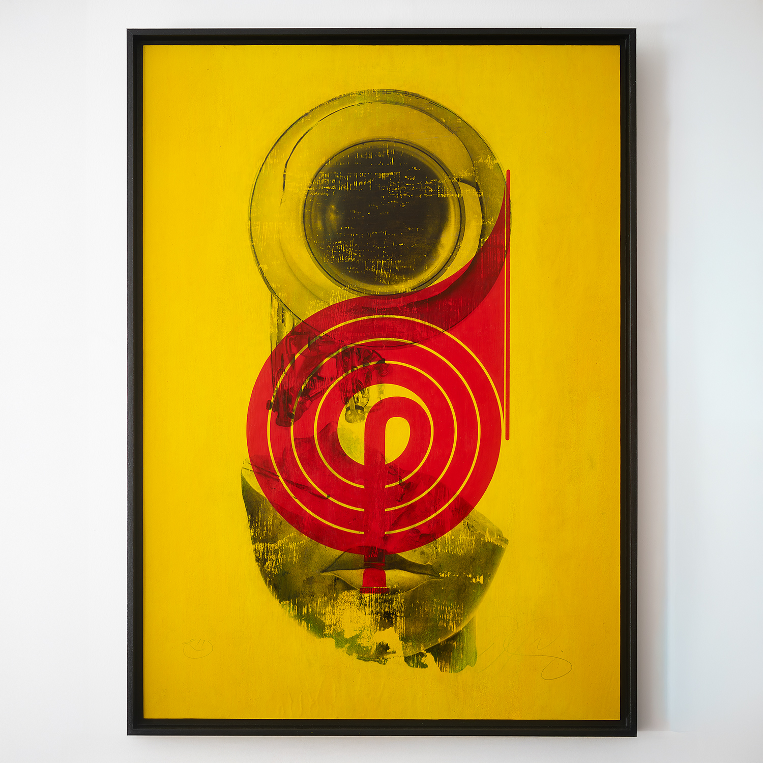 Sérigraphie sur papier (tirage N°2/15), peinture acrylique et transfert d’encre avec caisse américaine